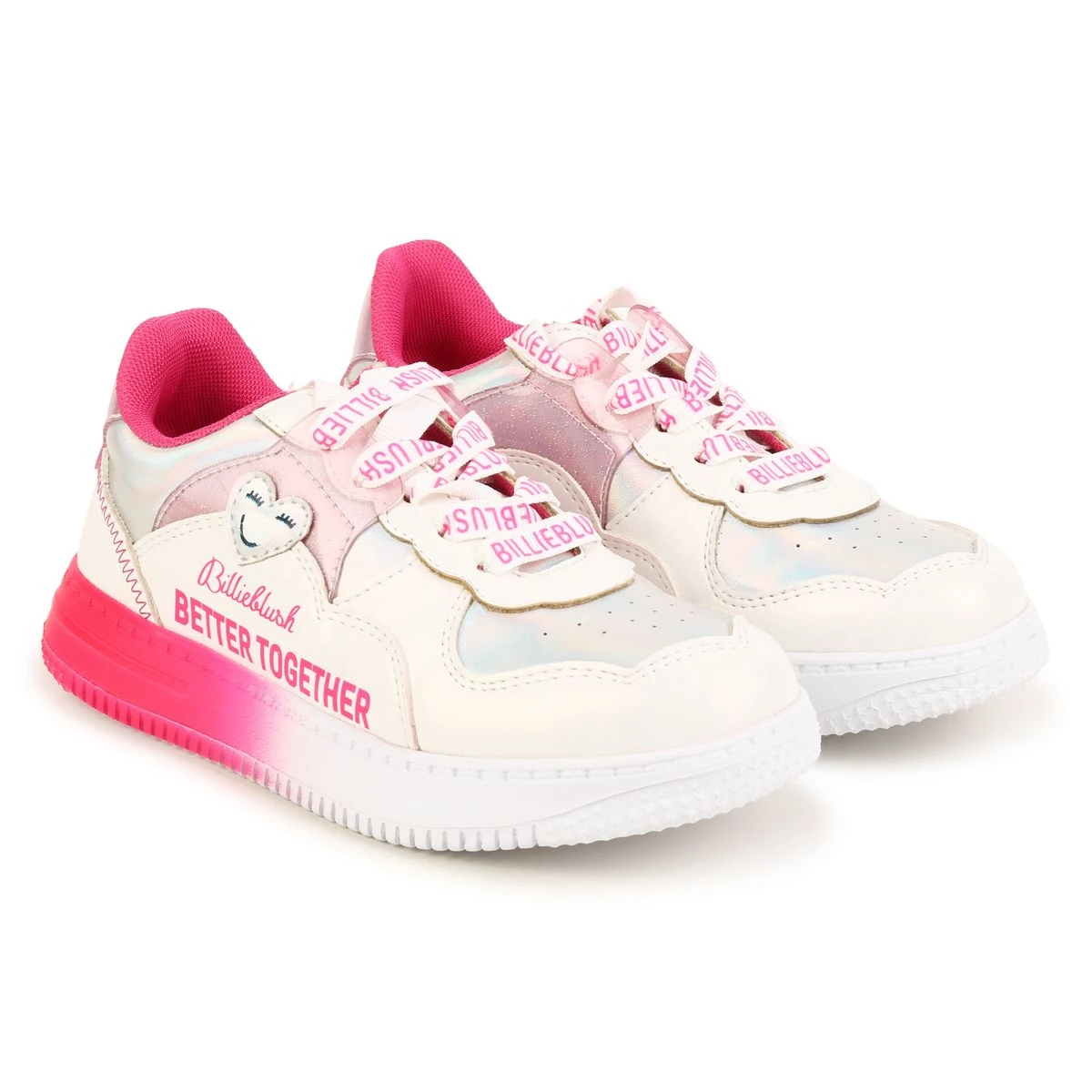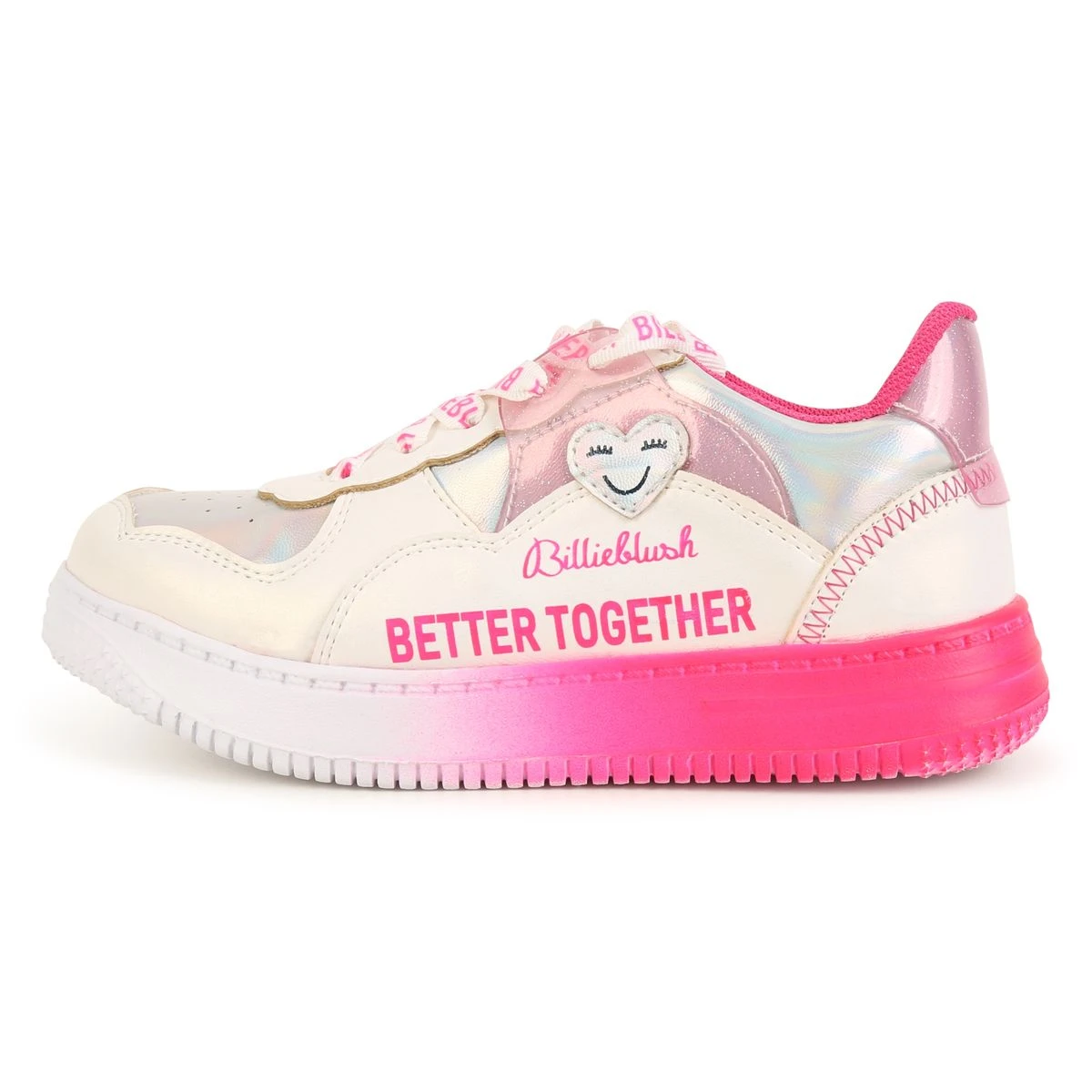 Ces baskets irisées et pailletées Billieblush présentent une semelle légère et une fermeture à lacets siglés. La doublure est en tissu et la semelle intérieure en cuir de chèvre avec un tannage minéral. Elles sont vendues en boîte. Contient des parties non textiles d’origine animale.