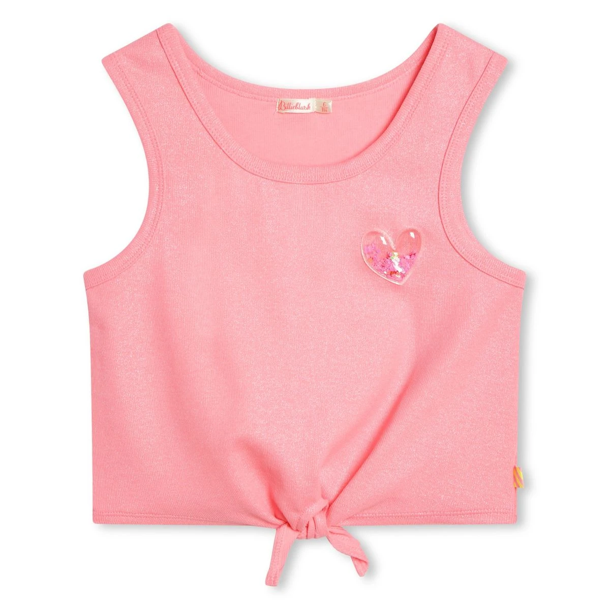 Comment ne pas craquer pour ce débardeur Billieblush en côte pailleté ? Il présente une encolure ronde, un petit noeud dans le bas et un badge fantaisie sur la poitrine. Il est disponible en plusieurs coloris.