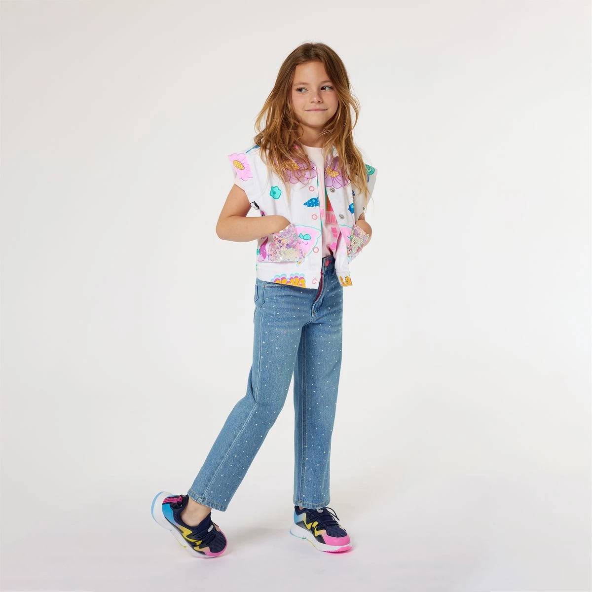 Ce jean Billieblush se distingue par son style rock avec ses clous appliqués sur tout l’avant. Sa taille est ajustable. Un jacron en silicone agrémente le dos. Ce modèle 5 poches est confectionné dans un denim en coton majoritaire.