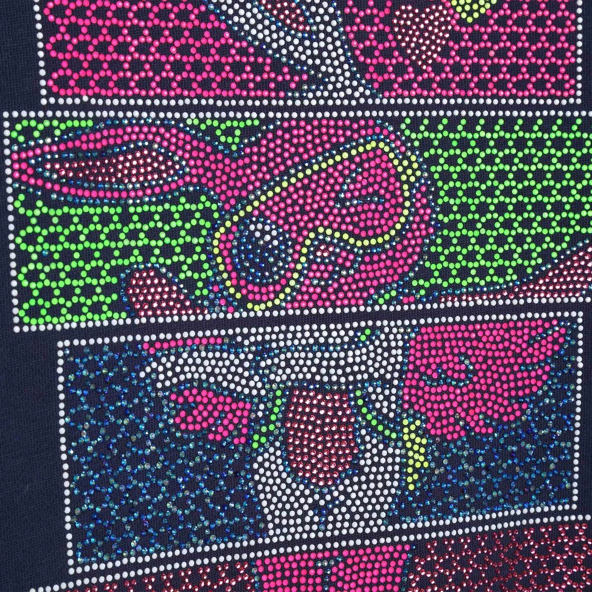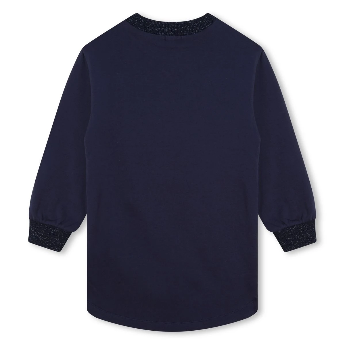 Cette robe sweat-shirt Billieblush est confectionnée en molleton 100 % coton. Le devant est décoré d’une illustration fantaisie composée de strass multicolores. Détail de charme, les poignets et le col en bord-côte arborent une finition pailletée.