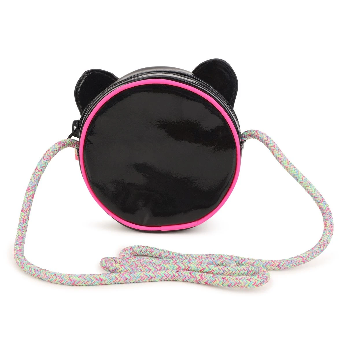 Ce sac à main Billieblush est très tendance avec son format rond. Son illustration tête de tigre multicolore rehaussée de sequins attire tous les regards. Il se dote d’une bandoulière corde contrastante. Dimensions : 12 x 4,8 cm.